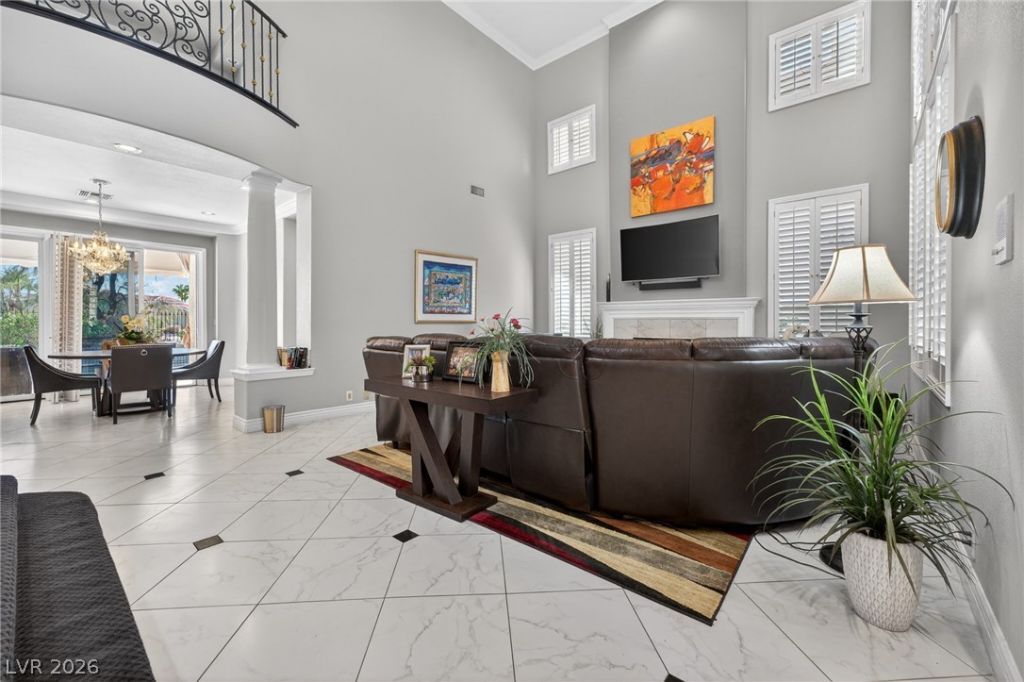APPROXIMATELY $100,000 IN RENOVATIONS, ELEVATED LOT ON GOLF COURSE OVERLOOKING ESTATE HOMES. PORCELAIN TILE FLOORS T/O. CROWN MOLDING. CEILING FANS. PLANTATION SHUTTERS. SKYLIGHT. 8 FT DOORS. ISLAND KITCHEN FEATTURES VIKING APPLIANCES, BOSCH DISHWASHER, GRANITE COUNTERS, UPGRADED CABINETS, GLASS DOORS AND 6 GAS BURNER VIKING COOKTOP. PRIMARY BEDROOM DOWN. UPGRADED PRIMARY BATH WITH SEPARATE FRAMELESS GLASS SHOWER STYLE STONE AND NEWER THERAPY JETTED TUB. DEN WITH BUILT-INS AND BALCONY. POOL/SPA/BBQ. $25,000 IN NEW HVAC SYSTEMS.