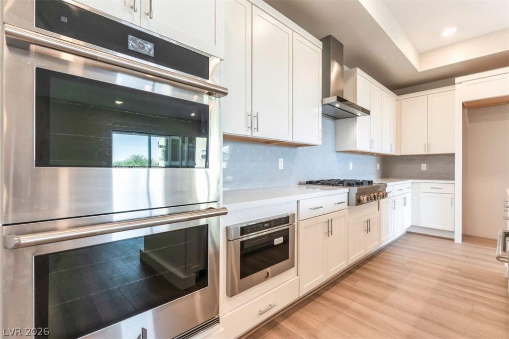 Move-in ready! (Brenta Italianate - Homesite 20). Experience luxury living in Mira Villa by Toll Brothers, located within the prestigious Canyons Village of Summerlin. This beautifully designed Brenta floorplan offers 2 bedrooms, 2.5 bathrooms, and 2052 square feet of single-level living with an open-concept design. The gourmet kitchen, featuring JennAir appliances, flows seamlessly into the dining area and great room?ideal for both everyday living and entertaining. The thoughtfully designed layout includes well-appointed bedrooms, a spa-like shower in the primary suite, and private elevator access with direct entry to your home. Enjoy a low-maintenance lifestyle with private garage parking, all set within a gated community just minutes from premier shopping, dining, and entertainment.